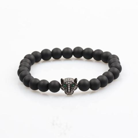 アメリカスタイルファッションジュエリー癒し黒溶岩石ビーズパンサー男性ブレスレット