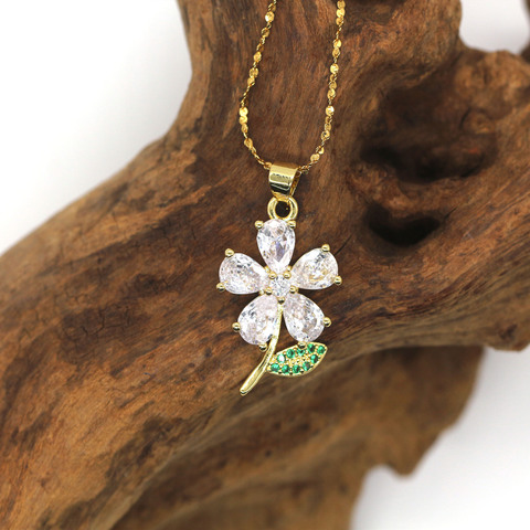 女の子のためのファッション18K金メッキジルコン花の形防水ペンダントチャームネックレス