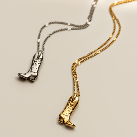 ステンレス18K金メッキブーツ形状ペンダントネックレス卸売