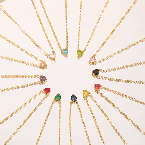 ミニマリストハートペンダントネックレス18Kゴールド誕生石ジルコンステンレスネックレス