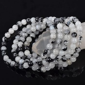 Doğal taş boncuklu bilezik 4mm 6mm 8mm 10mm güç bilezik siyah rutiquartz kuvars taş bilezik